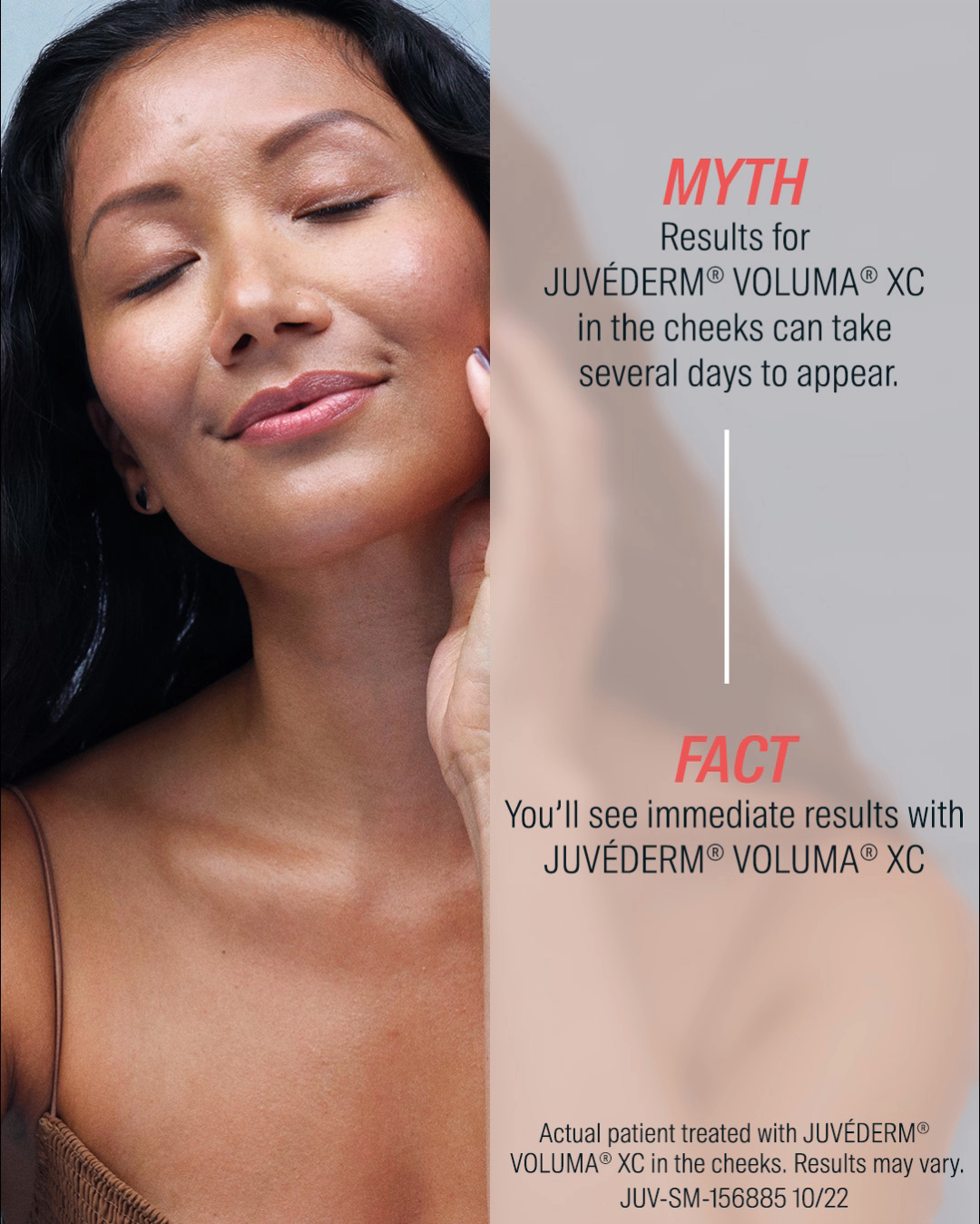 Age-related volume loss can cause cheeks to flatten and skin to sag. JUVÉDERM® VOLUMA® XC helps add volume for lift and contour in the cheek area.